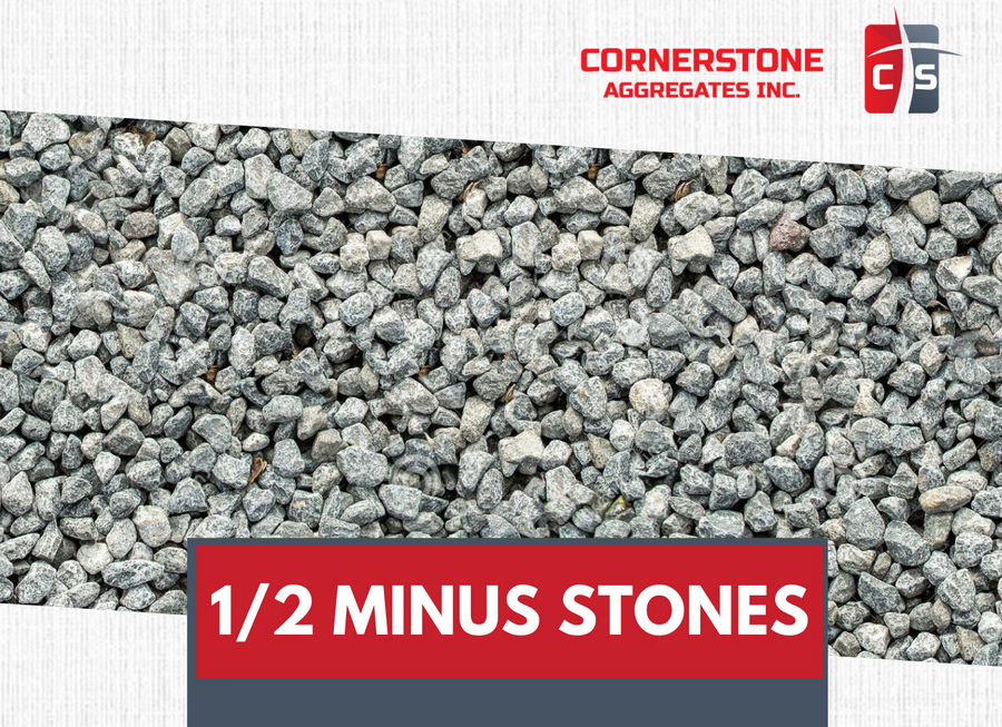 1/2" Minus Stone is a crushed aggregate consisting of angular stones up to 1/2 inch in size, blended with fine particles (stone dust). This mix is engineered for superior compaction, making it an ideal choice for stable bases in smaller-scale or more precise applications.